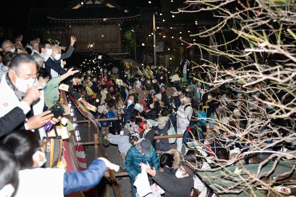 本殿前特別桟敷より打ち豆式を行う年男、年女を募集しております。